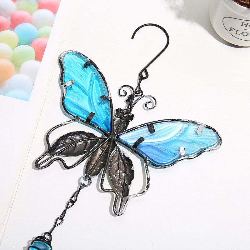 Garden balcony decorations-Colored glass butterfly aeolian bells